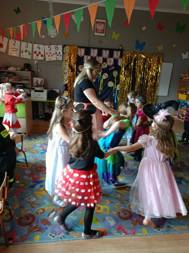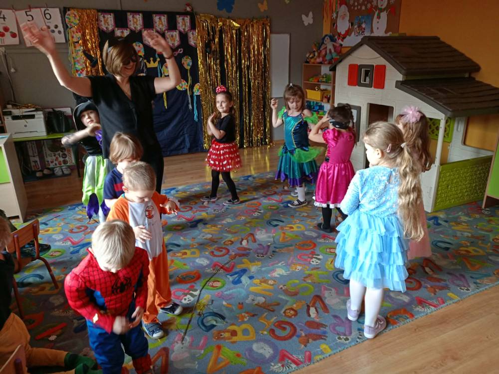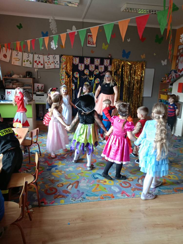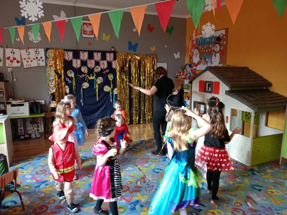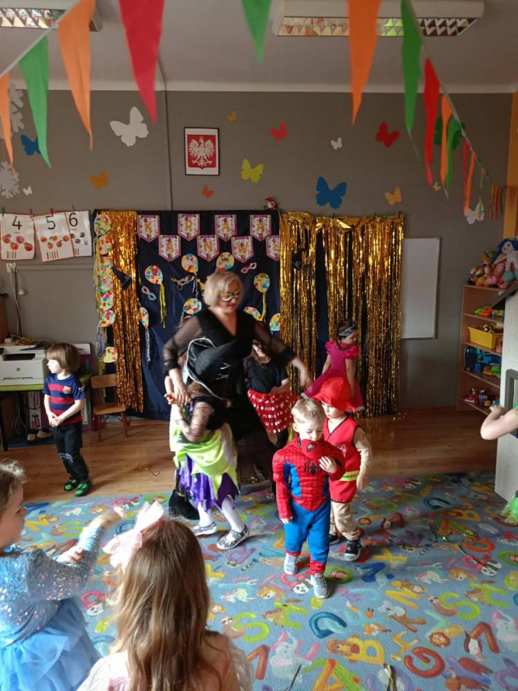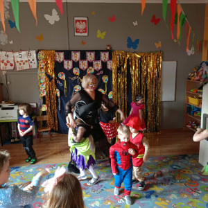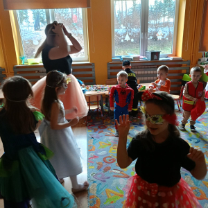 Zabawa karnawałowa to okazja, aby przebrać się za swojego ulubionego superbohatera, księżniczkę, ulubionego zwierzaka lub za wymarzoną postać z bajki. To także okazja do tańców i super zabawy. W radosny nastrój wprowadził dzieci wystrój sali przedszkolnej. W tym roku dzieci miały okazję skorzystać z dmuchańca, który stanął na sali gimnastycznej.