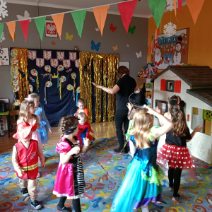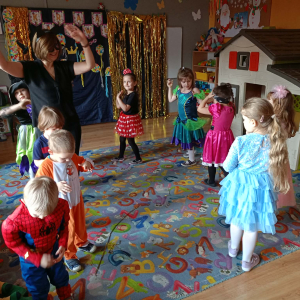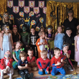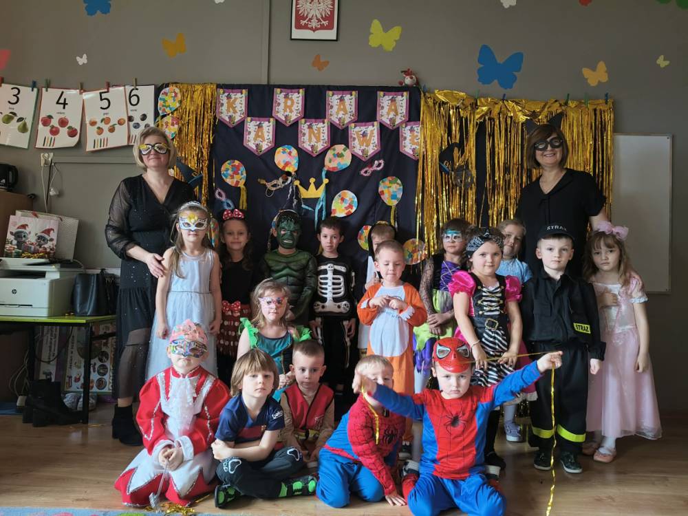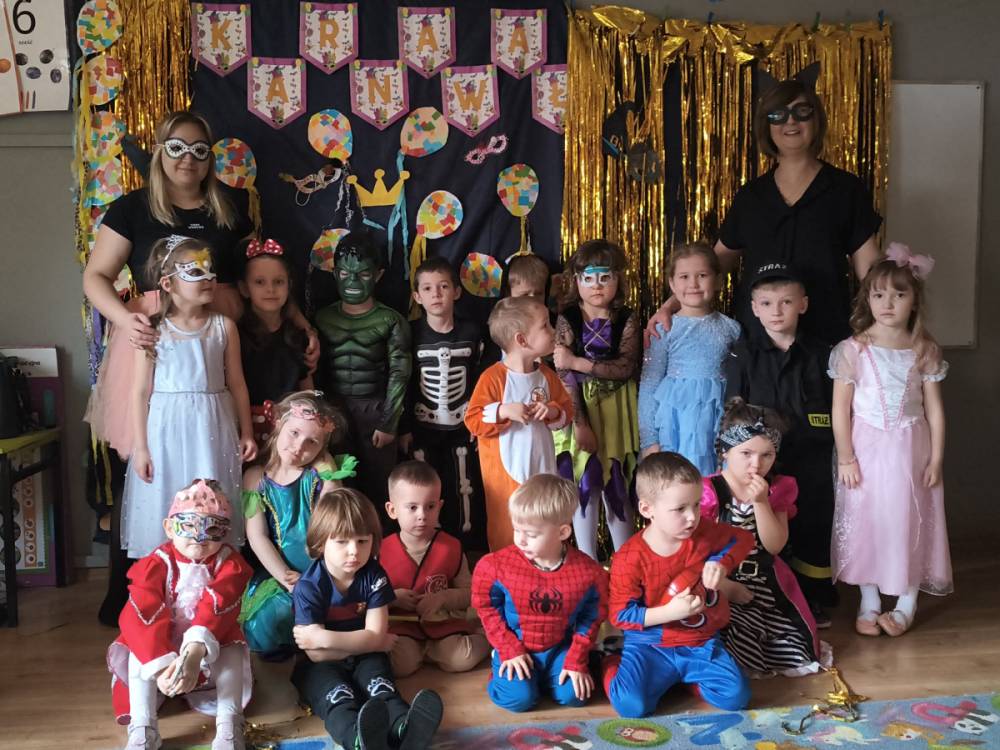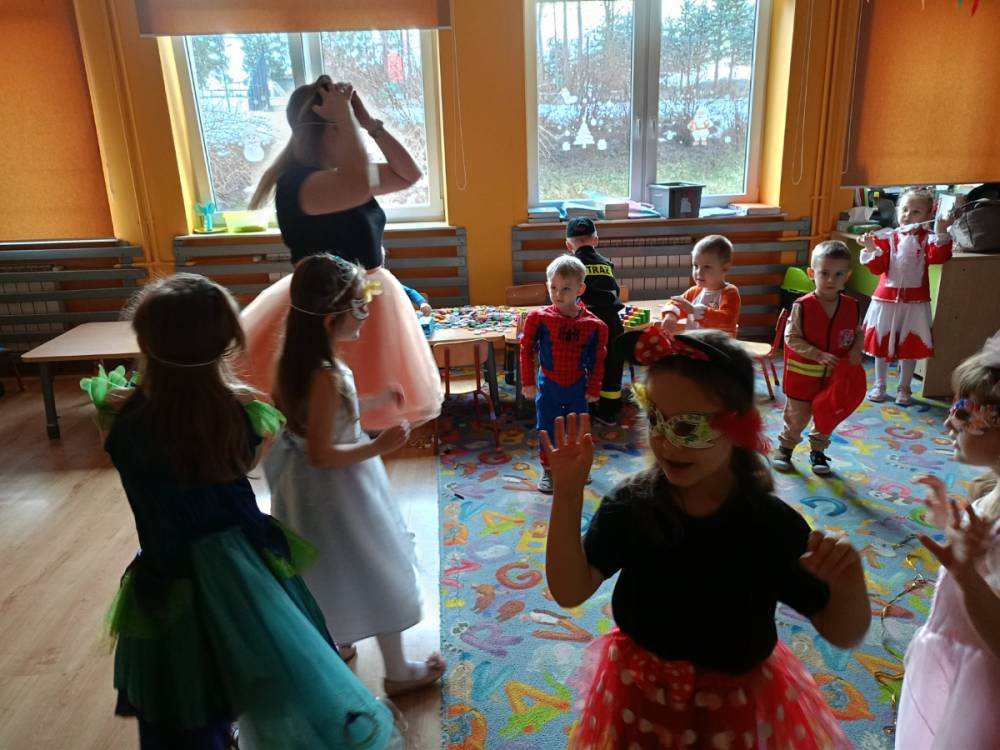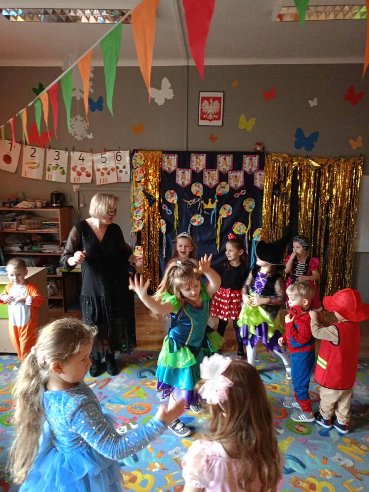 Zabawa karnawałowa to okazja, aby przebrać się za swojego ulubionego superbohatera, księżniczkę, ulubionego zwierzaka lub za wymarzoną postać z bajki. To także okazja do tańców i super zabawy. W radosny nastrój wprowadził dzieci wystrój sali przedszkolnej. W tym roku dzieci miały okazję skorzystać z dmuchańca, który stanął na sali gimnastycznej.