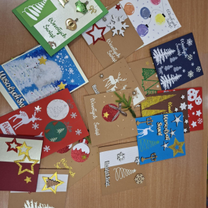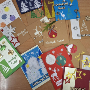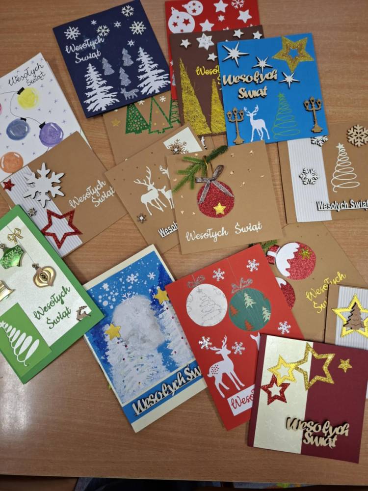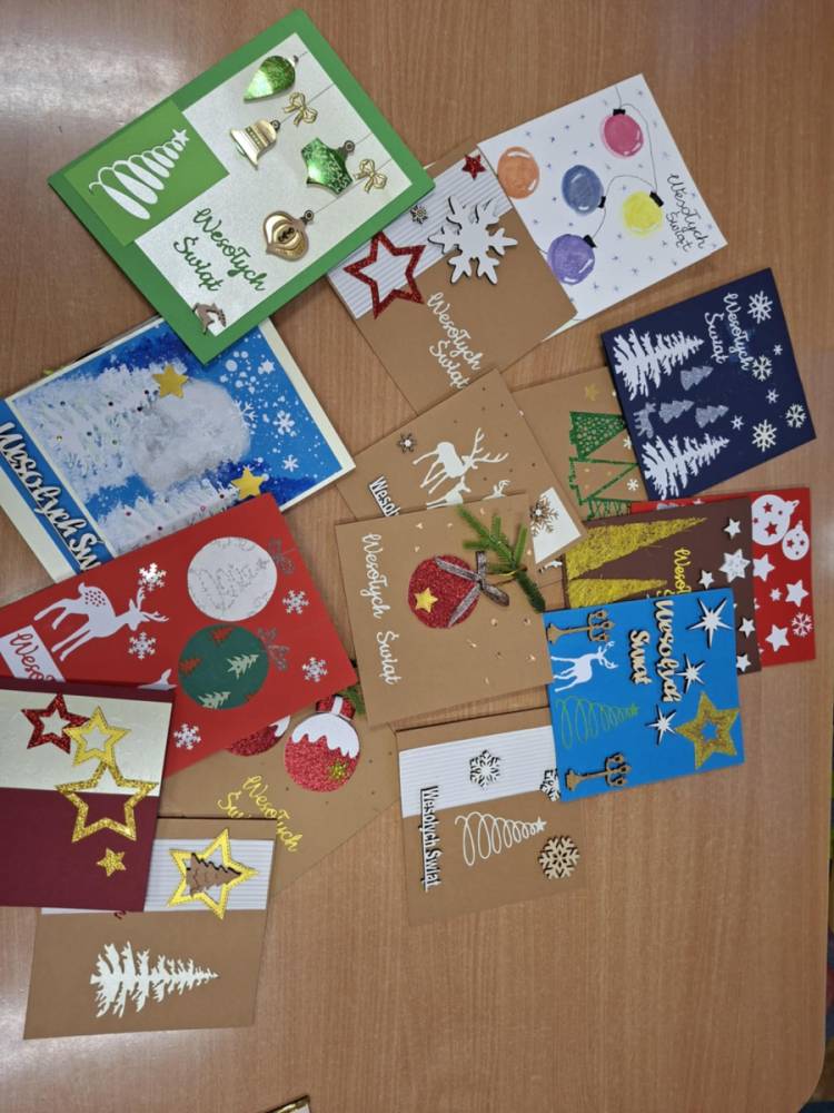 Samorząd Uczniowski włączył się w akcję szkolną ,, Świątecznej Paczki''. Wspólnie przygotowaliśmy kartki z życzeniami dla osób, do których trafiły paczki.